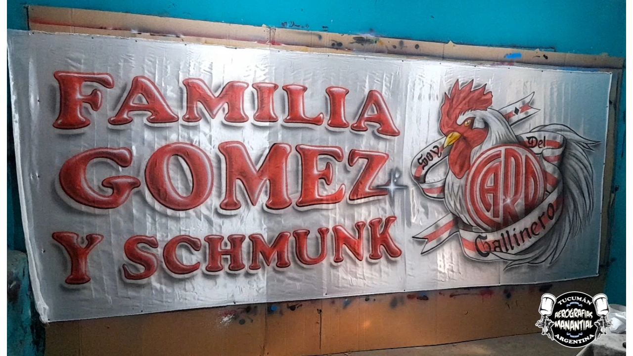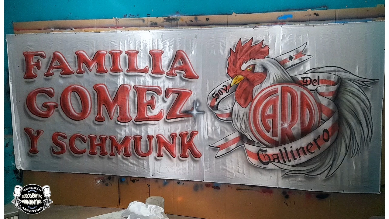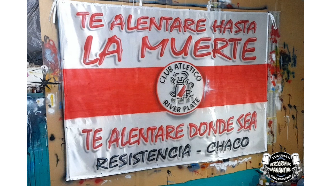 Además de las banderas de River Plate, realizamos banderas personalizadas de distintos equipos, de grupos musicales, de equipos amateurs, políticas, de egresados, religiosas, cumpleaños, de 15 años, casamientos, etc. Somos Aerografias Manantial y pintamos banderas desde hace mas de 15 años, 15 años llenando de color las tribunas.
